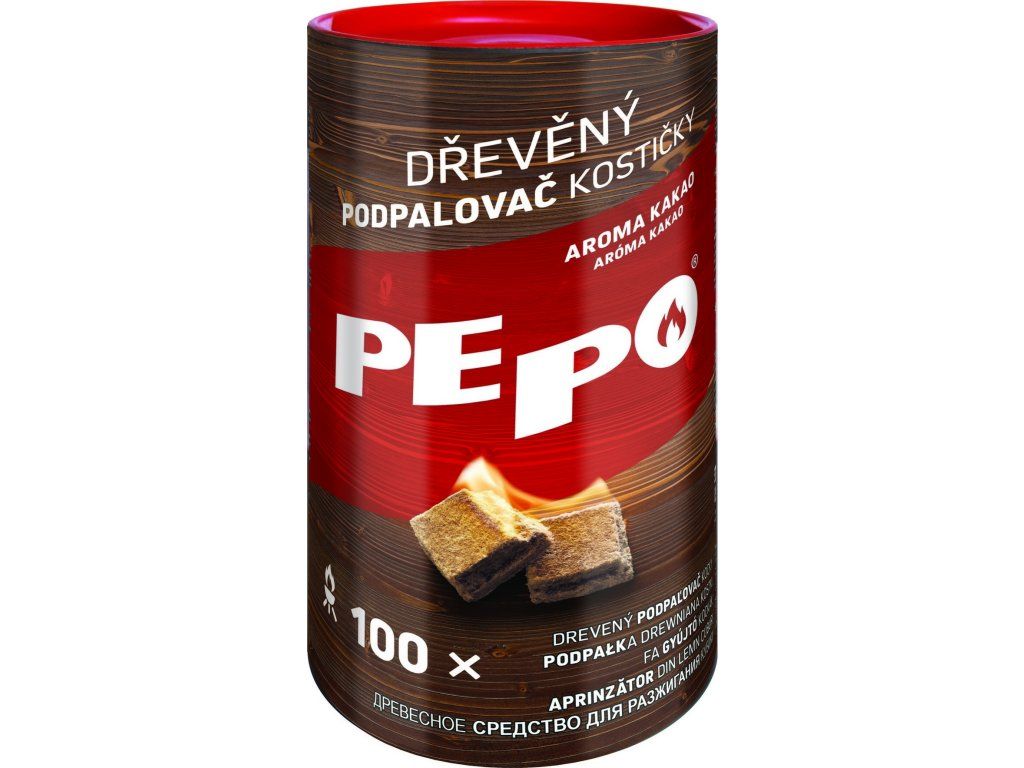 PE-PO dřevěný podpalovač kostičky, obsahuje pouze lisované dřevěné piliny a parafín. Zajímavá alternativa ke klasickým pevným či tekutým podpalovačům.