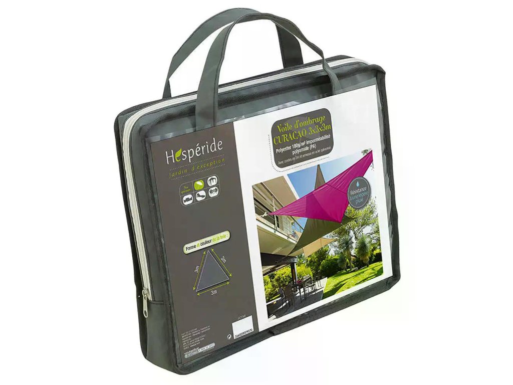 Sluneční plachta má tvar trojúhelníku o rozměru 3x3x3 m a lze ji jednoduše uchytit například pomocí lana, které je součástí balení.