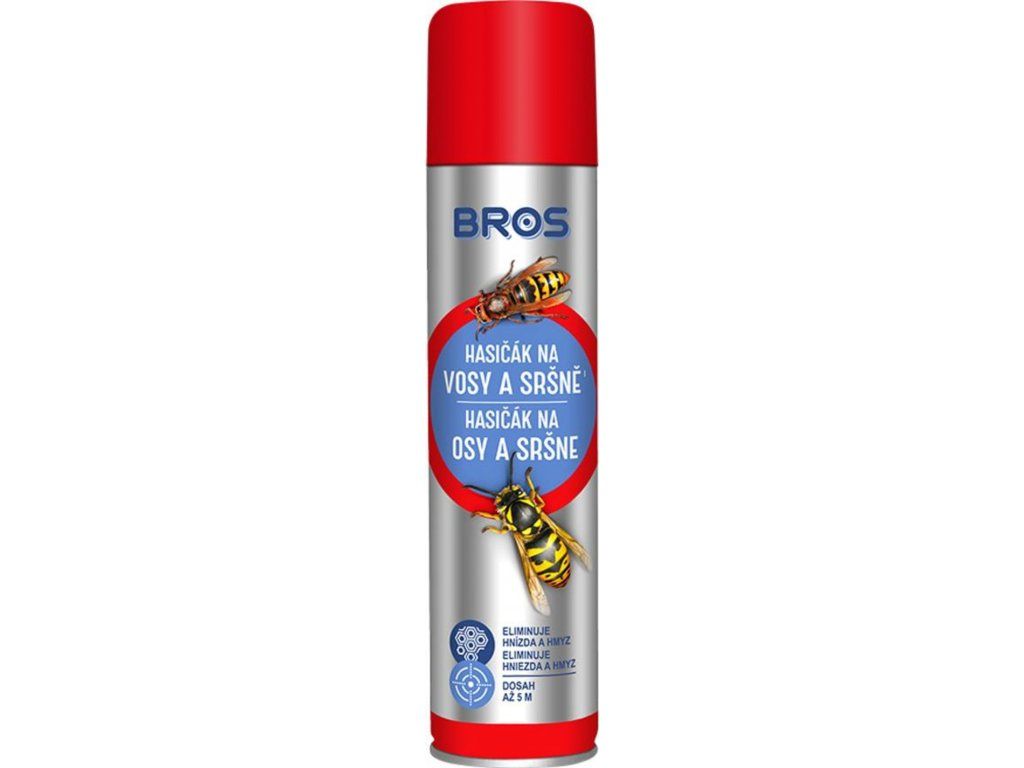 Sprej Bros proti vosám a sršním, určený k likvidaci vosích hnízd a hnízd sršňů. Účinek přípravku je okamžitý a udržuje se několik dní. Dosah rozprašování až do vzdálenosti 5 metrů. Používejte biocidní přípravek bezpečným způsobem. Před použitím si vždy přečtěte etiketu, informace o přípravku a návod k použití.